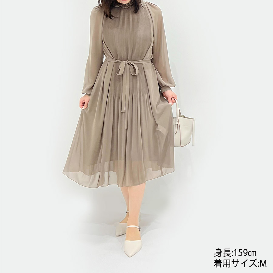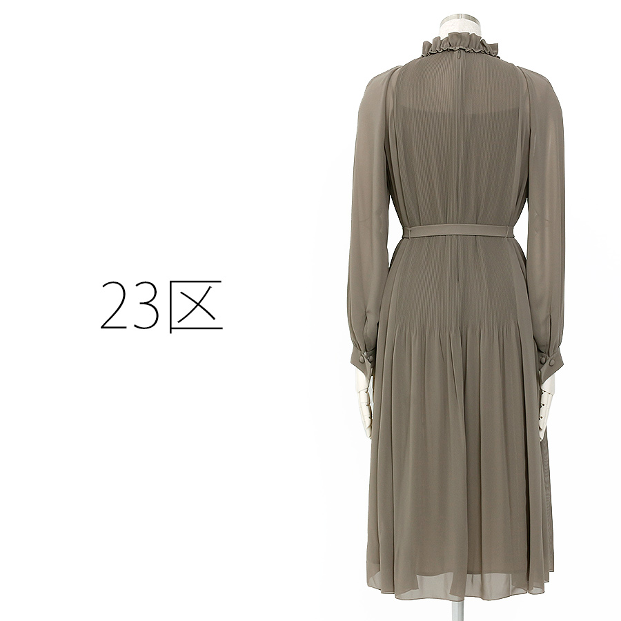 フリル襟プリーツワンピース(Mサイズ / ベージュ / 23区(ニジュウサンク)) [付属品 3点:カフスボタン・リボン、アンダードレス]