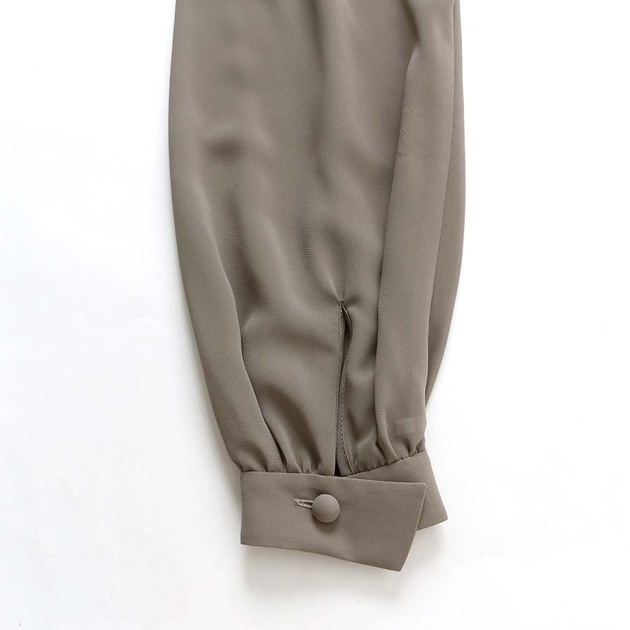 袖口にはカフスボタン、身頃には細かなアコーディオンプリーツが施されています。