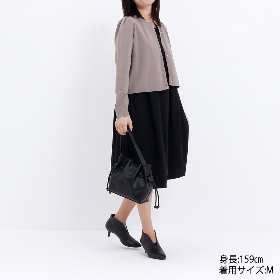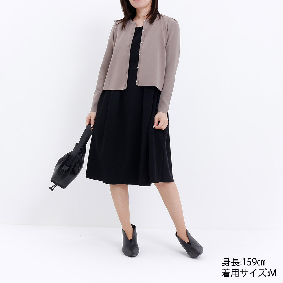 スカート部分にボリュームがあるワンピースにも羽織れるゆったりとした身頃。