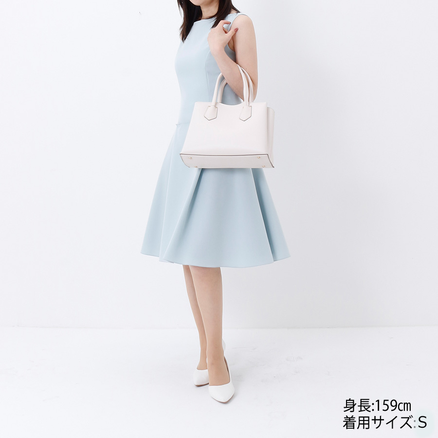 ★スタッフコメント★ローウエスト切り替えのタックデザインワンピース。程よい張りと厚みを持った微光沢素材。デコルテを美しく見せてくれるボートネック。スカート部分のタックが女性らしいフィット&フレアシルエットを作り出します。