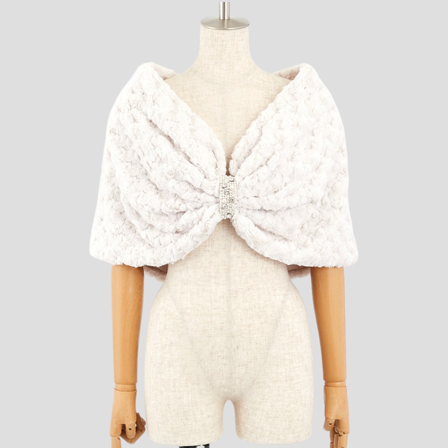 ブローチやコサージュなどフォーマルシーンにぴったりのアクセサー付きの洋服。
