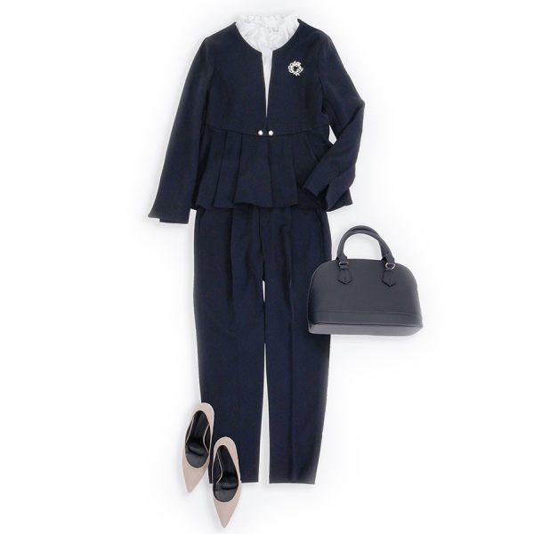 シックな色でまとめた卒業式におすすめの今どきを象徴するようなパンツスタイル。華のあるジャケットとブラウスが女性らしさを引き立てるセットアイテムは着回し力抜群です。ジャケットをテーラードに変えれば、普段のお仕事スタイルに。パンツをワンピースに変えて入学式にと、自分らしい今どきコーデが楽しめます。